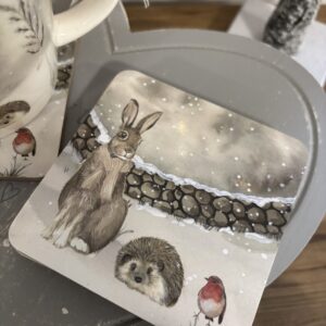 • XMAS WOODLAND ANIMAL COASTER 4/BOX HEAT RESISTANT WOOD