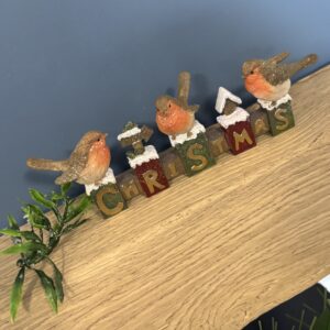 • MERRY CHRISTMAS ROBIN RESIN WORD BLOCK ORNAMENT