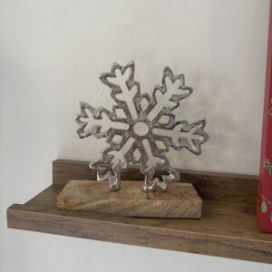 MANGO WOOD CUTOUT SNOWFLAKE BLOCK