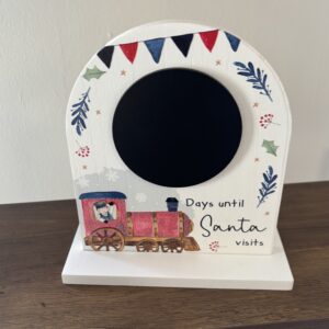 XMAS KIDS DAYS UNTIL SANTA CHALKBOARD BLOCK WHITE WOOD WITH TRAIN