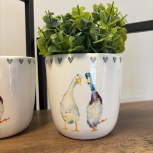 WHITE CERAMIC DUCK PLANT POT WITH HEART BORDER