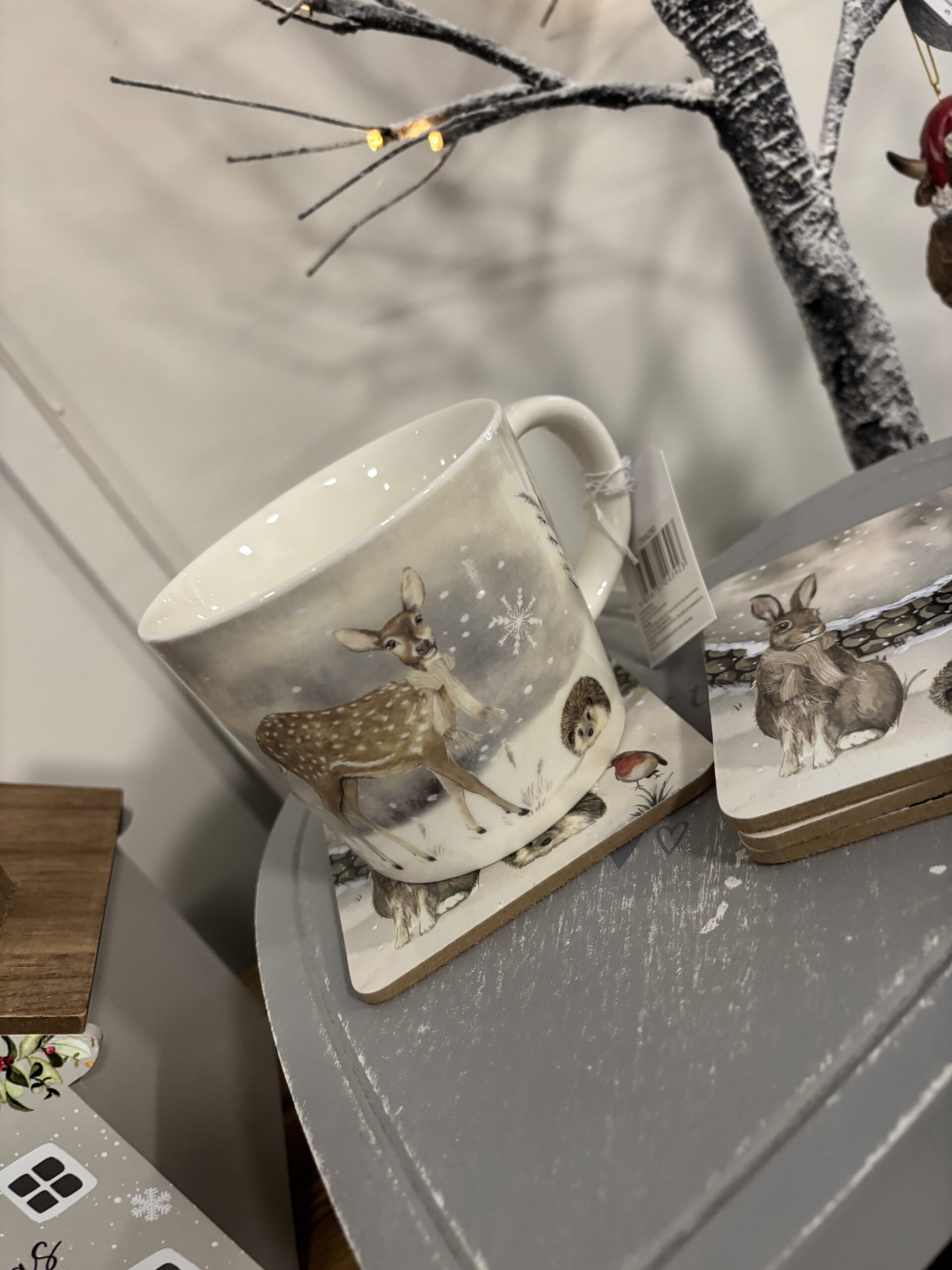XMAS WOODLAND ANIMAL MUG WITRH SNOWFLAKES